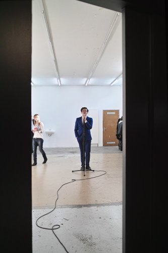 Die Performances von Gregory Hari sind Spektakel des Affektiven. Sanft, leise, subversiv versetzen sie die Zuschauer zwischen die Normen und Regeln der Kunst und Popkultur als Schauspiel. Ob Hari hierfür die Betrachter während viereinhalb Minuten zu Akteuren transformiert, indem er in der Rolle eines demütigen Fingerring-Küssers diskret Wertvolles durch den rituellen Gestus des Küssens ins Rampenlicht rückt, oder ob er für seine Diplomarbeit „stuck“ an der F+F während drei Stunden einen Lift im 1960-er Jahre Look als nicht definierten Ort besingt; es werden stets Spuren gelegt, die in der Anspielung verharren müssen. Der Lift bleibt dabei eine unbeständige Passage von A nach B, ein Wartezimmer, das in die Höhe steigt oder in die Tiefe fährt. Wie die Ringe dient er als skulpturale Requisite zur Festlegung einer szenischen Bühne. Auf ihr verbrüdern Musik, Gesang, Gesten die Akteure dieses Raumes zu Portalen möglicher Identitäten. Performer, Skulptur und Publikum werden Teil einer Arena des Kontrapost: Ein Ort der Statik innerhalb eines bewegten Spiels, in der die Präsenz des Künstler als Bindeglied über Werden und Vergehen in der Autopoiesis eines Loops regiert. In diesem Setting transformiert Hari ausgewählte Splitter der Popästhetik in einer Zeit der medialen Allgegenwärtigkeit. Zuschauende werden durch kaschierte Referenzpunkte überfrachtet, durch die redundante Performanz gesättigt – der Überfluss im Rituellen generiert ein romantisches Moment, dessen eindeutige Botschaft aber durch das Fehlen eines befreienden Narratives nicht eingelöst wird. Wie eine Pop-Maschine fragmentiert Hari Bezüge aus Film, Musik, traditioneller Folklore und Mode bis zur Unkenntlichkeit. Die Darbietungen berühren dabei stets ein Verborgenes, das sich im reduzierenden Gestus der Wiederholung als Reflexion entpuppt. Eine Kunst-Kraft entlädt sich über dem Publikum. Alles erstarrt und rauscht zugleich, ist temporär, live, manchmal die gedämpfte Version einer modernen Operette, manchmal stumm, fluid, populär; bis der Dirigent verschwunden sein könnte. Zurück bleibt eine Grenzerfahrung des Bewusstseins, Nostalgie, Konfusion und ein paar Requisiten, die ohne den Akteur Hari als Surrogate im Raum verbleiben. – Alexandra Loser